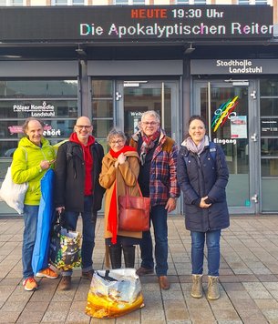 Wir, das sind: Natalie Forester, Rainer Furch, Madeleine Giese, Christian Higer und Stefan Kiefer. Wir arbeiten im Museum, im Theater, am Körper und vor der leeren Seite. Wir haben alle (mehr oder weniger) mit Kunst zu tun. Wir reden über Kunst – beruflich und privat. Die meisten von uns sind Schauspieler, da liegt es nahe, Theater zu spielen. Außerhalb der Institution Themen zu verhandeln die uns interessieren oder bewegen, neue Formen und neue Orte auszuprobieren. Unsere erste Produktion war „Kunst“ von Yasmina Reza, die wir mit großem Erfolg in verschiedenen Museen (Pfalzgalerie KL, ZKM Karlsruhe etc.) und Theatern (u.a. Staatstheater Saarbrücken) gespielt haben. Der „Nachfolger“ – „Wo fängt die Wand an?“ von Madeleine Giese beschäftigt sich ebenfalls mit Kunst und ist genauso erfolgreich. "Man merkt es den Schauspielern an, daß sie einen Riesenspaß haben, im Museum zu spielen. Und daß sie dabei ganz nebenbei noch wichtige Erkenntnisse zum Verstehen von Kunst verbreiten, macht diese Komödie zu einem Erlebnis. Interessant, witzig und auf jeden Fall sehenswert." SWR 2 / Kerstin Bachtler Drei Masken Verlag GmbH https://www.dreimaskenverlag.de/ Und unser aktuell neuestes Stück heißt: DIE APOKALYPTISCHEN REITER Eine schwarze Komödie von Madeleine Giese Bestattungen Gruber boomt- mit mehr als 300 Filialen bundesweit und „Schnäppchenpreisen“ mischt er die altehrwürdige Bestatterzunft Deutschlands auf. Der Kopf dieser Discount-Pietäten, Josef Gruber, aber ist ein Phantom. Keiner kennt ihn, niemand weiß etwas Genaues. Jetzt wagt er sich aus der Deckung und lädt vier nach außen fest der Tradition verpflichtete BestatterInnen zu sich. Und Gruber macht diesem Quartett aus recht fragwürdigen Charakteren ein unmoralisches Angebot, das sie kaum ablehnen können … |